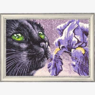 Чёрный кот с изумрудными глазами - замечательная картина для любителей кошек.