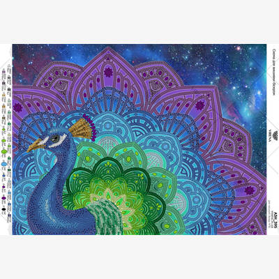 Схема для вышивки бисером картины Virena. Рисунок и схема нанесены на габардин. Это качественная ткань, проклеенная флизелином. Срезы ткани оплавлены. Рисунок водостойкий, чёткий и насыщенный нанесен на ткань при помощи качественной печати. Схема разработана для вышивания чешским бисером размером 10. Для удобства рукодельницы на шаблоне указаны рекомендуемые цвета бисера (номера не указаны). Это дает возможность самостоятельно подбирать тот вид бисера, который больше нравится. Так же указано необходимое количество бисера каждого цвета в штуках. Бисер в комплект не входит. Можно отдельно заказать комплектацию схемы бисером в нашем магазине. Для этого в процессе оформления заказа в поле "комментарий" нужно написать: "подбор бисера под схему". Так же схему можно укомплектовать бисерными нитками и иглами. Собранный комплект может стать замечательным подарком рукодельнице. Зашивка полотна частичная, вышиваются отдельные фрагменты сюжета. Вышивается павлин с ярким сказочным хвостом. Павлин на картине символизирует счастье, благополучие в семье, красоту, благородство, добрую славу, награды и звания. Схема вышивается с применением пришивных элементов.